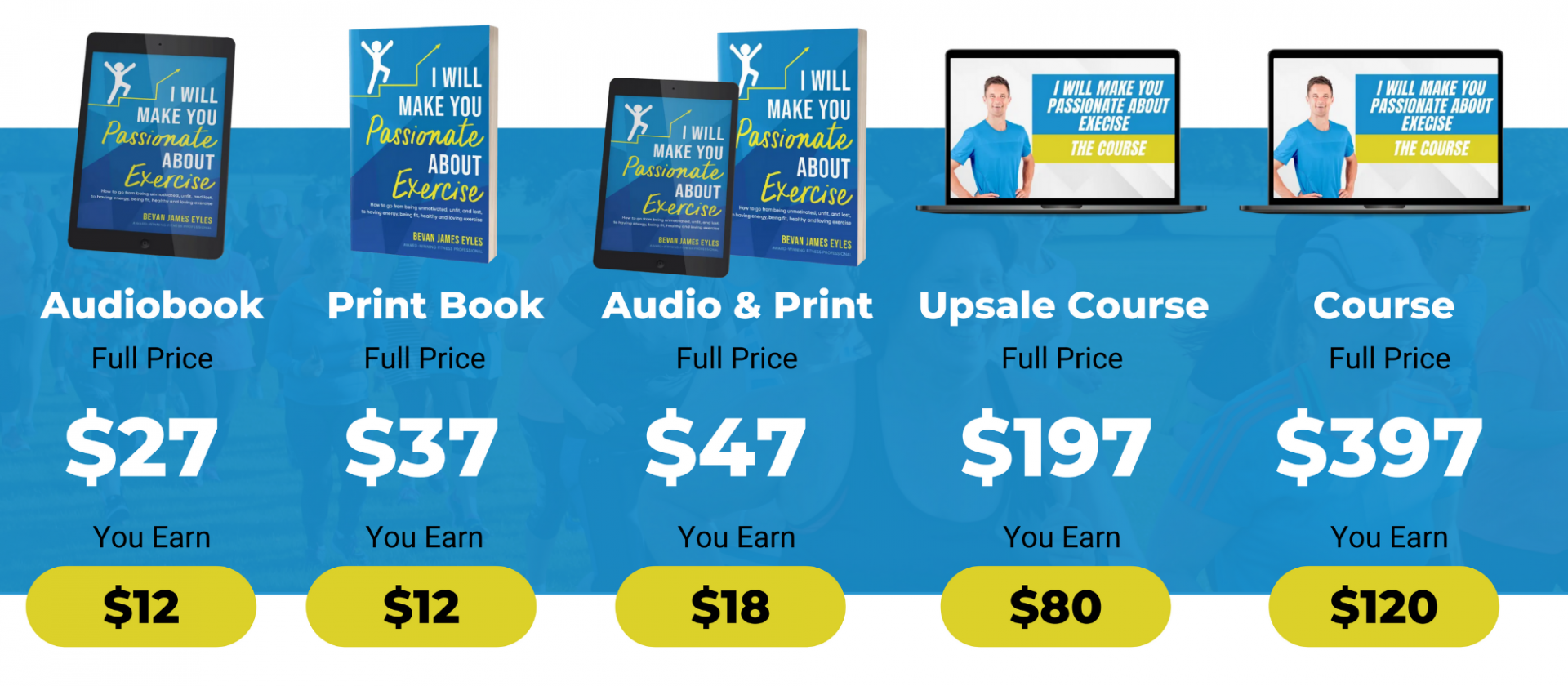 As an affiliate, you can earn the following commissions on the I Will Make You Passionate About Exercise products: